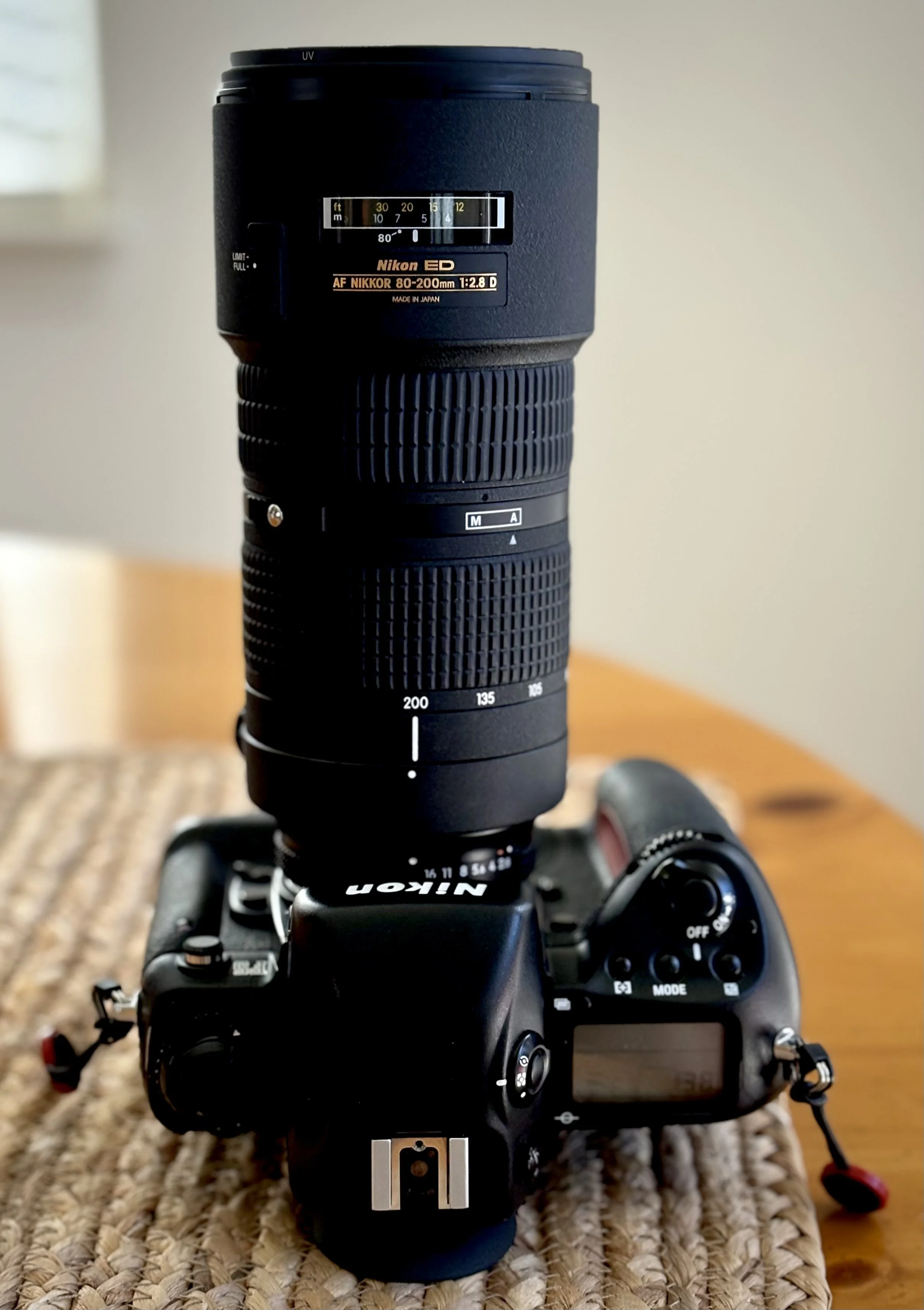 As I looked at various options and read reviews, my research eventually took me to a legacy Nikon lens; the 80-200 ED AF-D f/2.8 constant aperture beast. The 80-200/2.8 was Nikon's absolute top-of-the-line professional telephoto zoom at its introduction in 1997. This lens is made of metal, it’s heavy, quiet, super-fast focusing and optically amazing. Mounted on my Nikon F5, this kit is formidable and weapon-like.